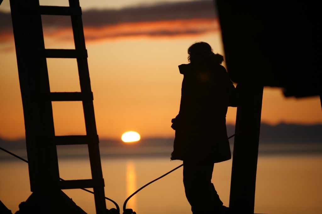 Svalbard reindeer often emerge during the evening to feed. With a bit of luck, we may spot them moving through the snow, their silhouettes glowing in the soft light