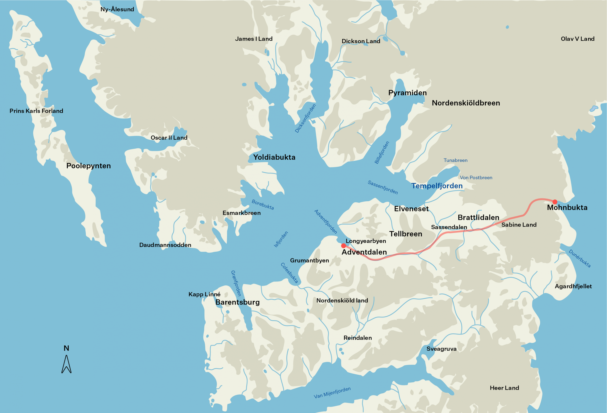 Due to low temperatures and the amount of sea ice, the east coast of Spitsbergen is one of the hunting grounds of the polar bear. To get there, we drive past large glaciers, through wide valleys and coastal landscapes and across frozen rivers.